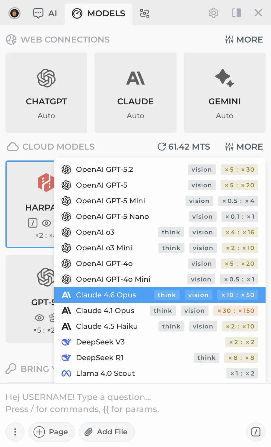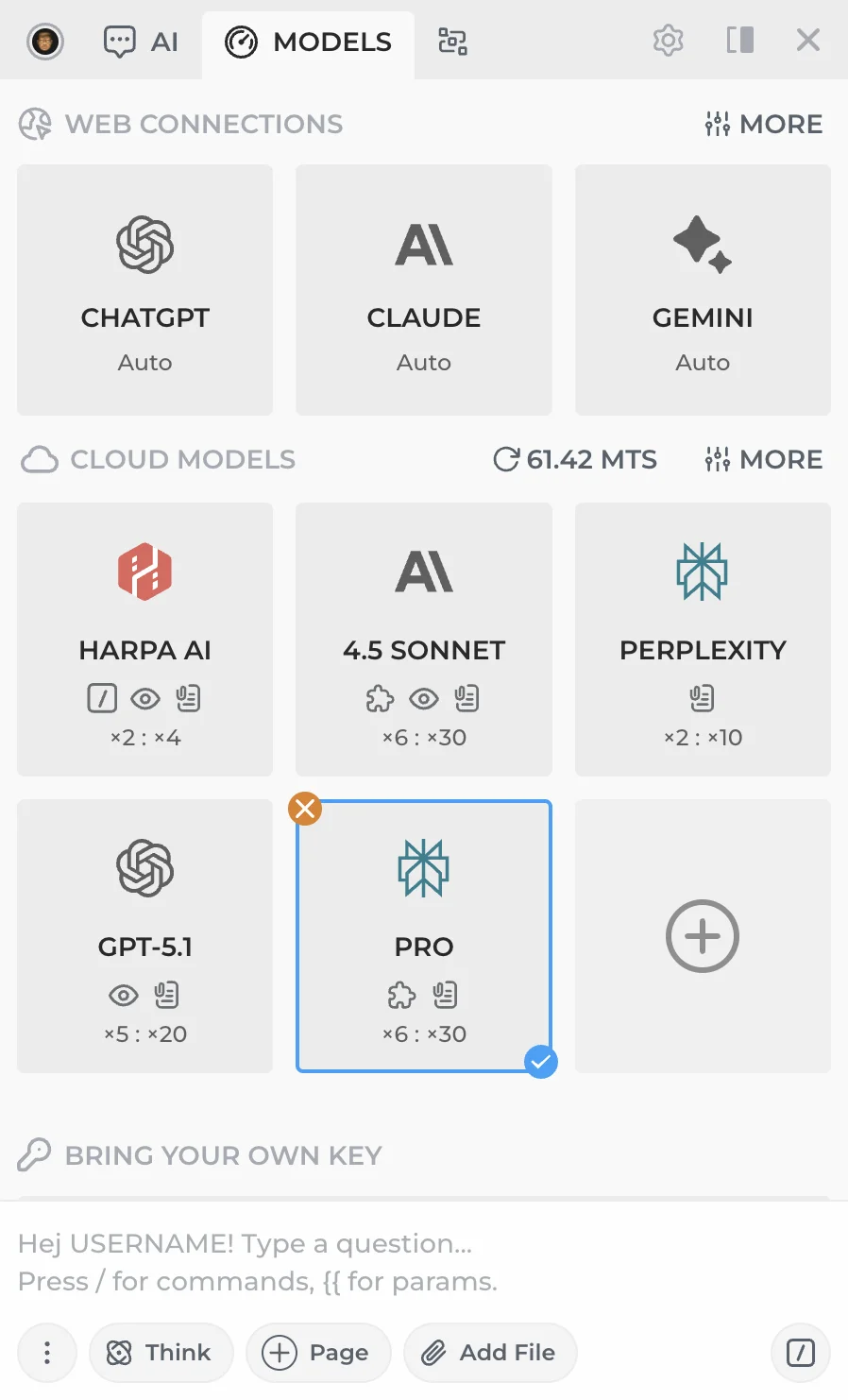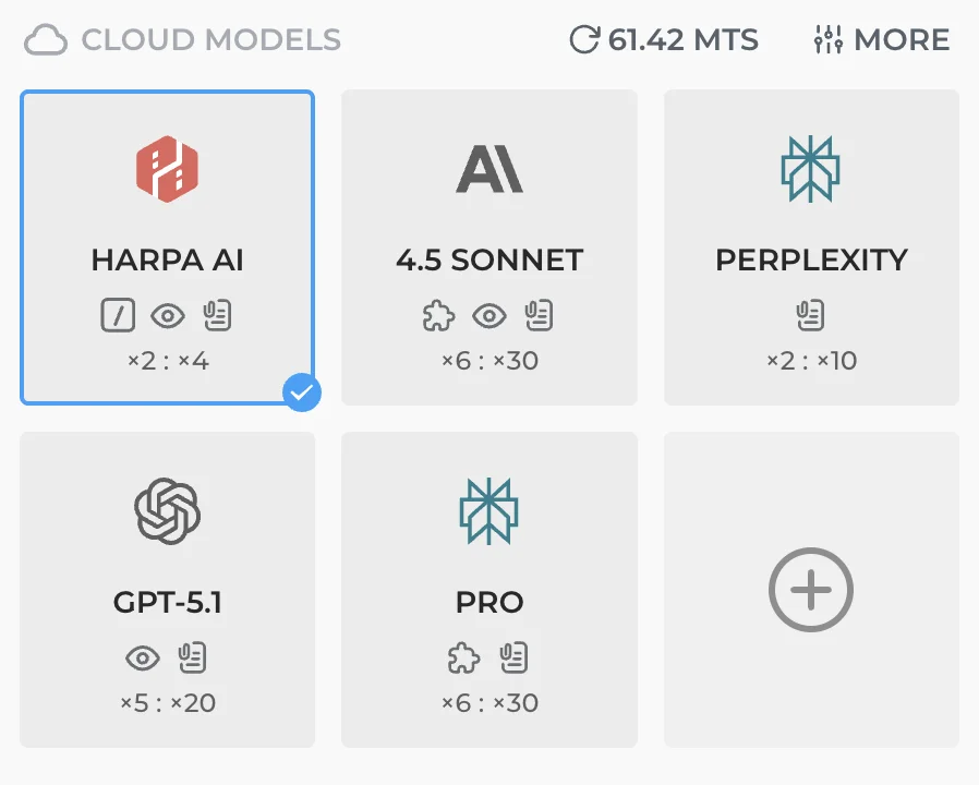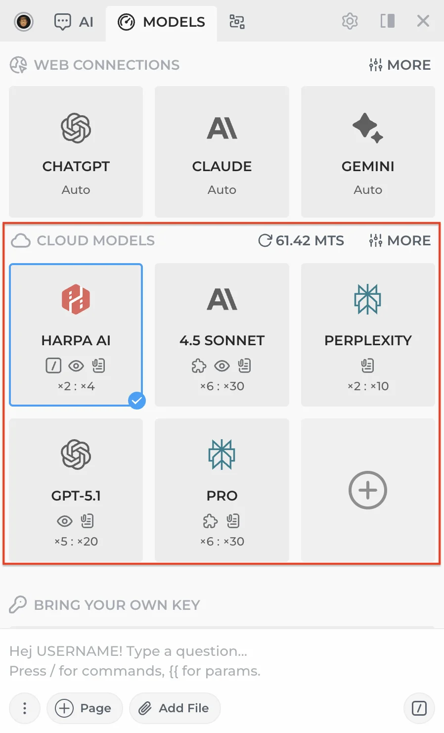 The HARPA AI connection is fine-tuned by our team, optimized for cost and quality.